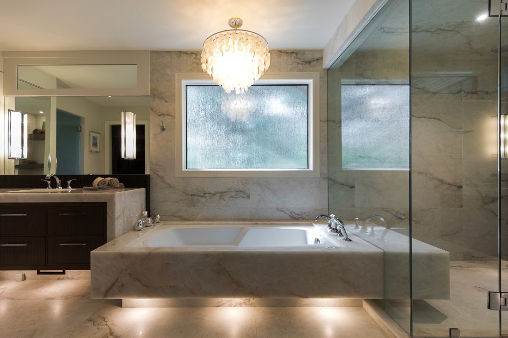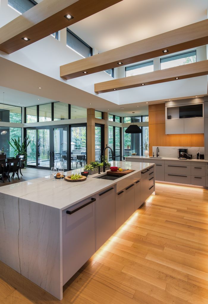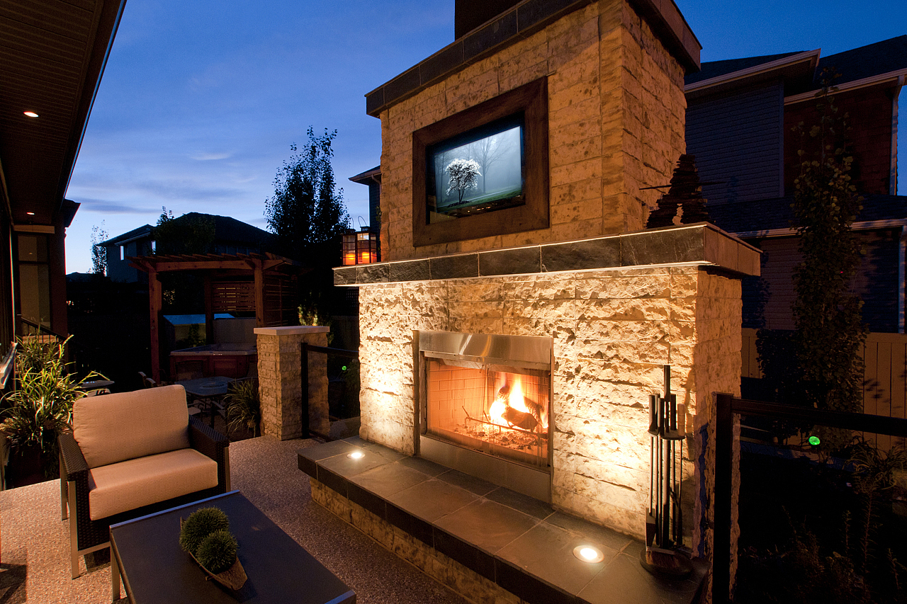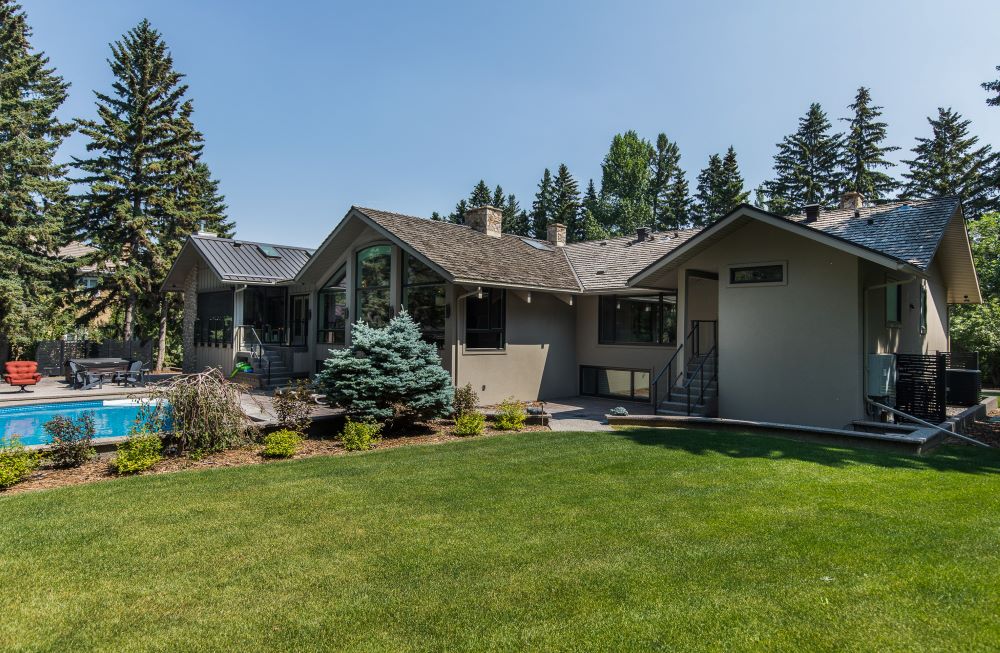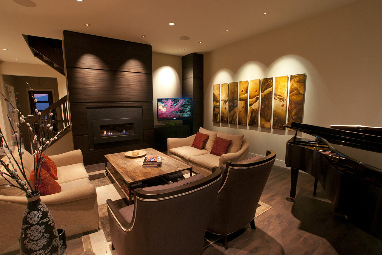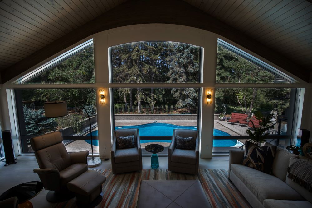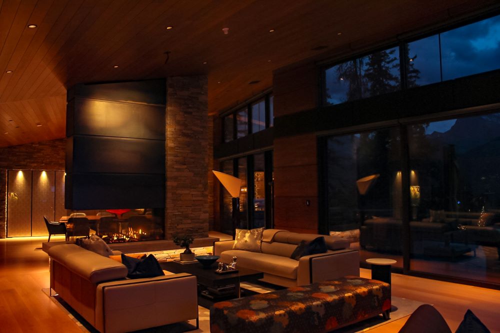 This Calgary home takes elegance to the next level, with warm, inviting lighting that is strategically placed to brighten up the typically dark areas. Complete with an automated outdoor screen to tie it all together.