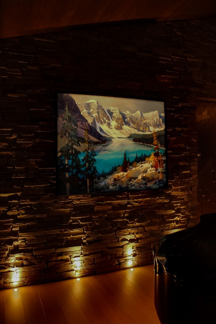 This elegant Canmore home creates an ambiance like no other, using our integrated systems to preset the mood for both daytime, and evening hours. With the homeowner being an artist, this was the perfect opportunity to create magic with their work. Illuminating the paintings elevates the sophistication even more, and with a state-of-the-art entertainment system consisting of both a home theatre and a golf simulator, this residence is a mecca of modern entertainment.