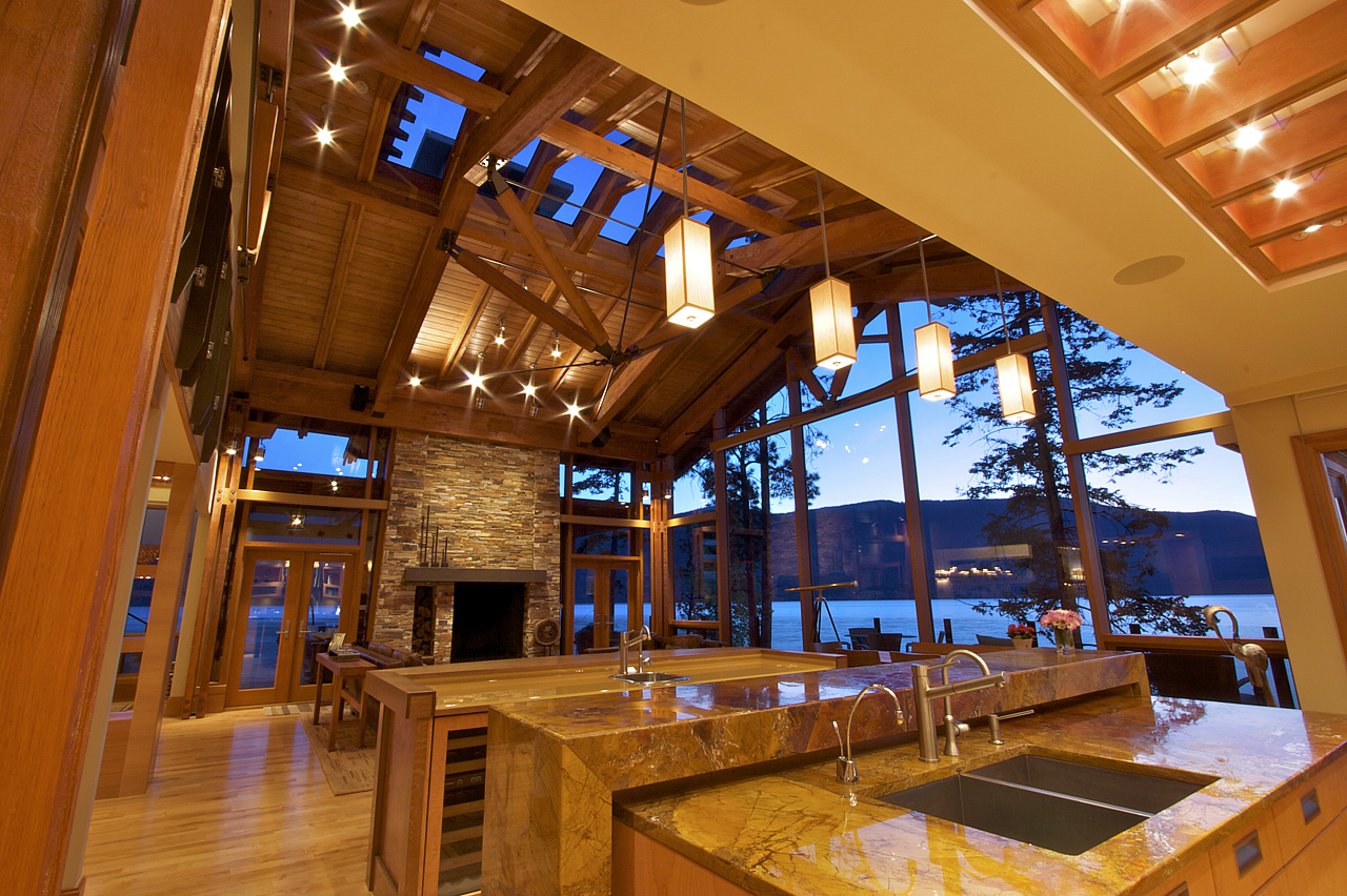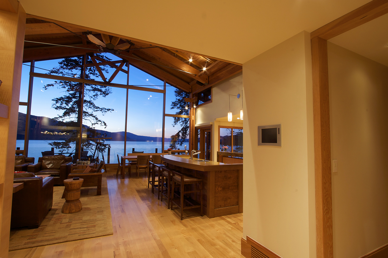 This beautiful Vacation Home is located on banks of the Okanagan Lake in Kelowna, British Columbia and incorporates four separate buildings. The clients wanted the most relaxing experience possible for both their guests and themselves, so Symphonic went to great lengths to ensure all aspects of the property were fully integrated and easy to operate.As you enter the property through the front gate, the driveway lights automatically illuminate ahead of you, provided a truly welcoming entrance.